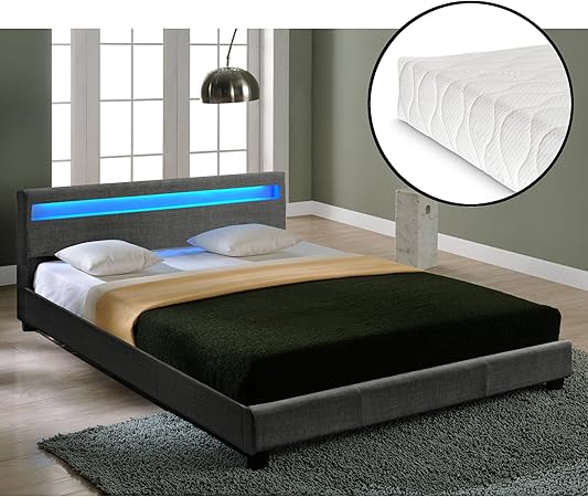 Lit Double Rembourre Design Avec Eclairage Led En 6 Couleurs Sommier A Lattes Matelas Mousse A Froid Polyester 140 X 200 Cm Gris Fonce Amazon Fr Cuisine Maison