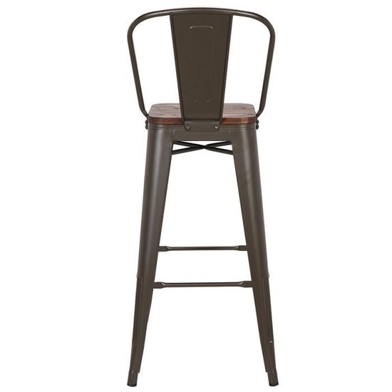 Lot 4 Chaises Bar Industrielles Metal Noir Assise Bois Osaca 7961