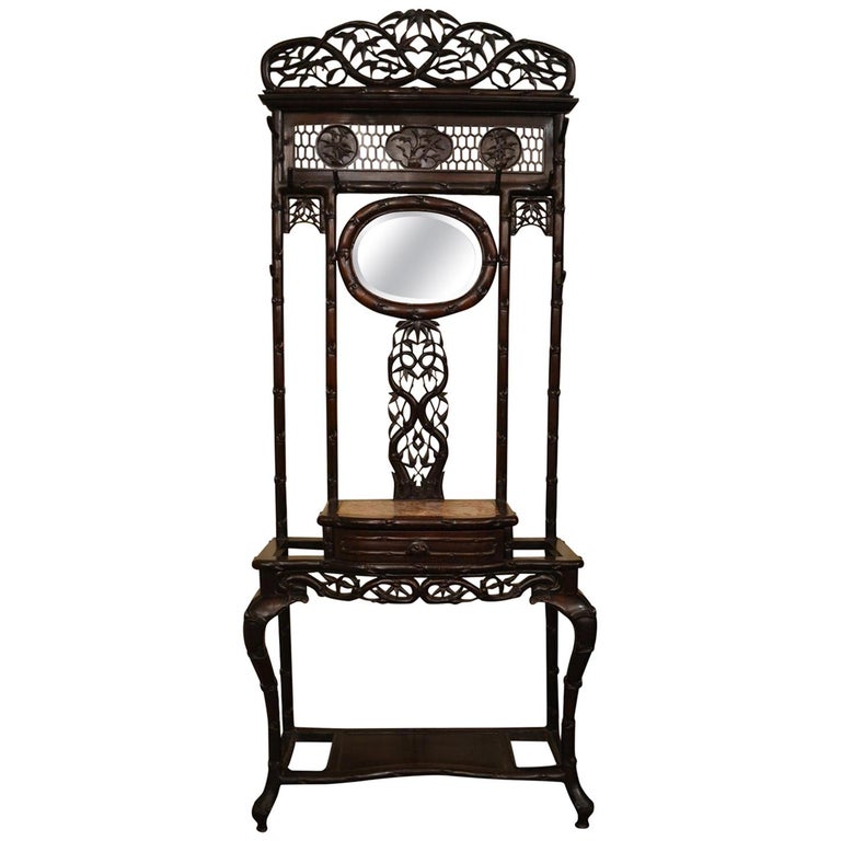 Antique Chinese Teakwood Porte Manteau Hall Tree With Small Mirror Circa 1880 For Sale At 1stdibs