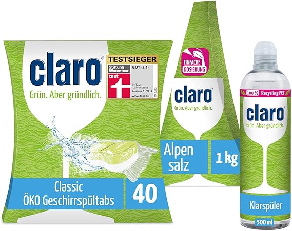 Claro Classic Kit De Nettoyage Pour Lave Vaisselle 40x Eco Pastilles Lave Vaisselle 1kg Sel Lave Vaisselle 500ml Liquide Rincage Amazon Fr Epicerie