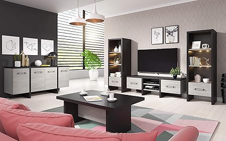 Tendencio Salon Complet Olen Style Moderne Gris Chene Et Noir Amazon Fr Cuisine Maison