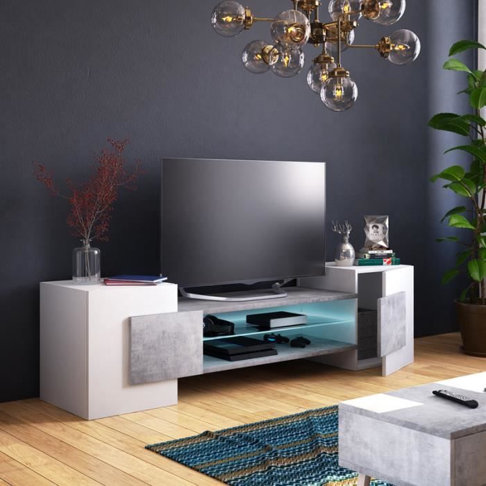Meuble Tv Meuble De Salon Gaelin 160 Cm Blanc Mat Beton Avec Led Style Contemporain Design Moderne Achat Vente Meuble Tv Gaelin Meuble Tv 160 Cm Mod Cdiscount