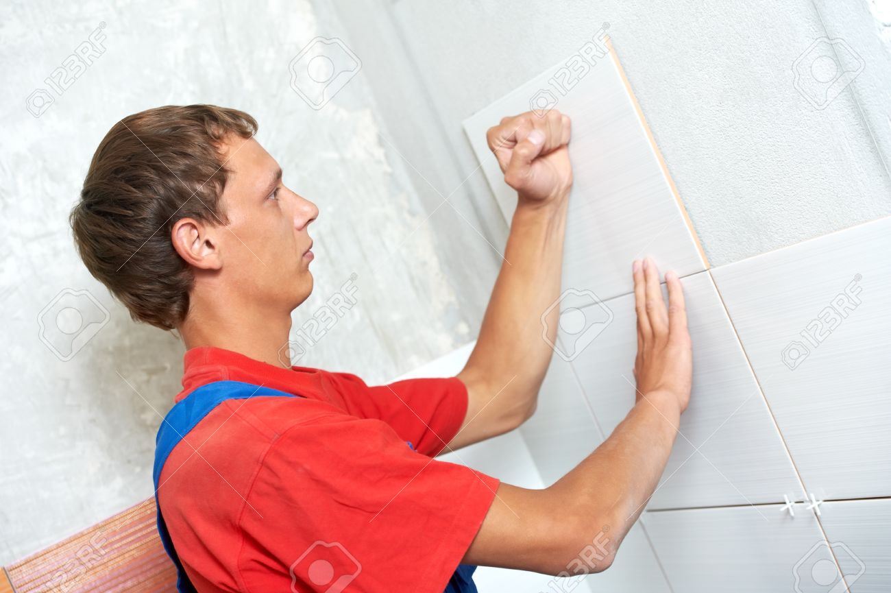 Carreleur Carrelage Mural De Fixation A La Maison Les Travaux De Renovation De Reparation Banque D Images Et Photos Libres De Droits Image 21769517