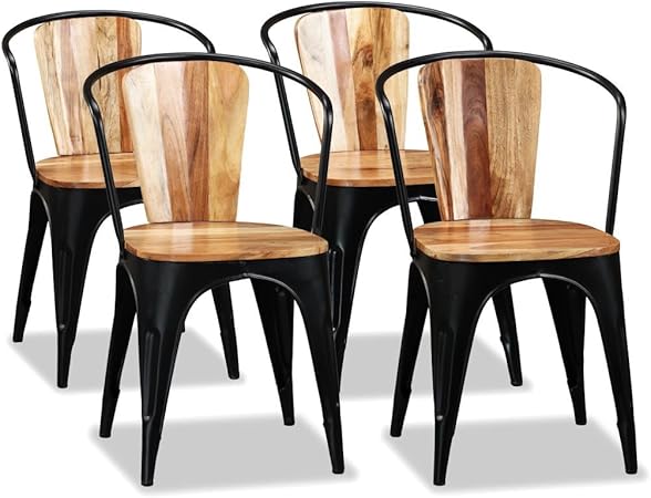 Festnight 4 Pcs Chaise De Salle A Manger En Bois D Acacia Massif Style Tolix Amazon Fr Cuisine Maison