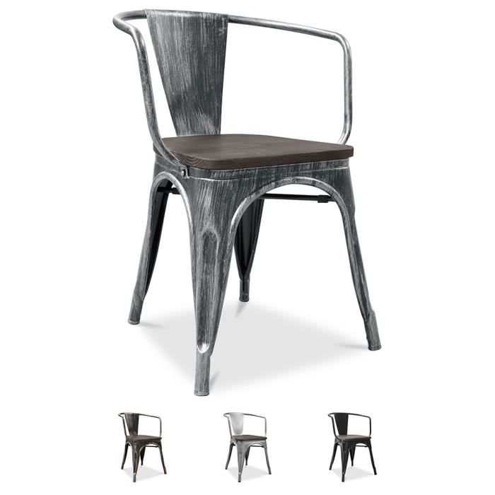 Chaise Avec Accoudoir Style Tolix Metal Et Bois Clair