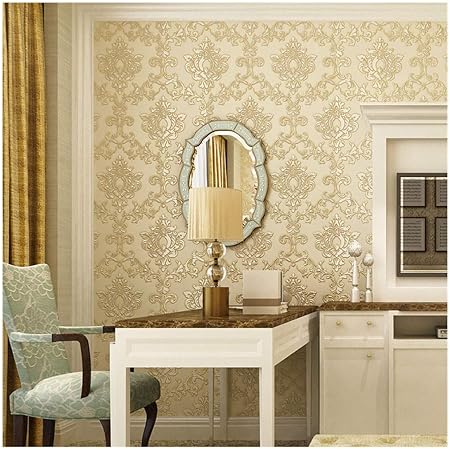 Papier Peint Papier Peint Classique Europeen De Salon De Chambre A Coucher En Relief Profond 3d Non Tisse Mur De Fond Jaune Amazon Fr Bricolage