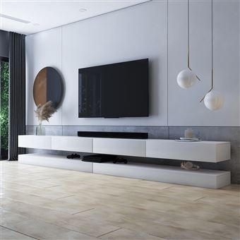 Meuble Tv Suspendu Meuble De Salon Mural Hylia Double 2x140 Cm Blanc Mat Blanc Brillant Sans Led Style Moderne Achat Prix Fnac