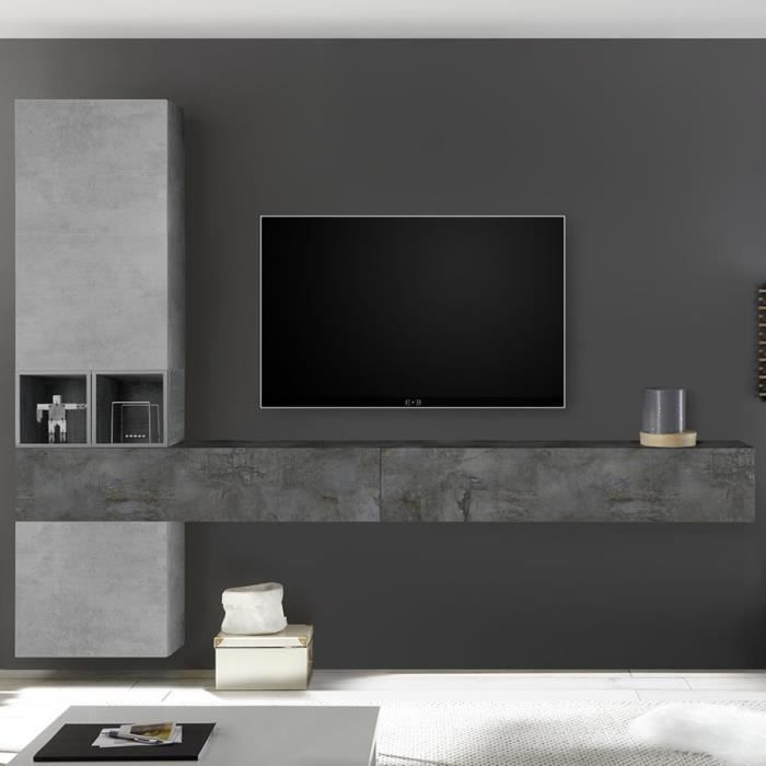 Meuble Tv Mural Design Gris Effet Beton Perdita Gris L 277 X P 40 X H 209 Cm Achat Vente Meuble Tv Meuble Tv Mural Design Gris Cdiscount