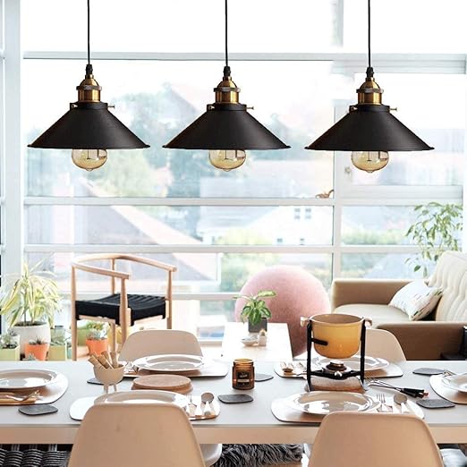 Retro 3 Luminaires Suspension Industrielle E27 O22 Cm Metal Lustre Abat Jour Plafonnier Interieur Eclairage Decoratif Noir Amazon Fr Luminaires Et Eclairage