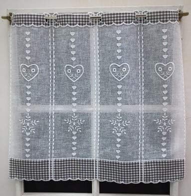 Rideau Brise Bise Beige Et Gris 45 X 70 Cm Motif Coeur Objets Et Decoration