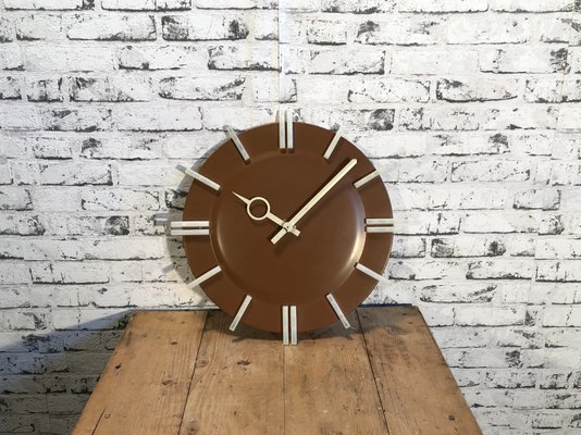 Horloge Murale Pph 413 Industrielle Marron De Pragotron 1970s En Vente Sur Pamono