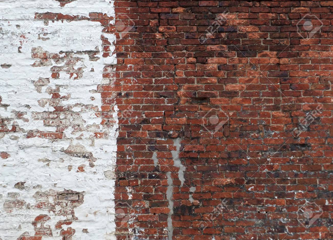 Vieux Mur De Brique Rouge Moitie Peint En Vieux Peeling Peinture Blanche Ou Badigeon Banque D Images Et Photos Libres De Droits Image 81913871