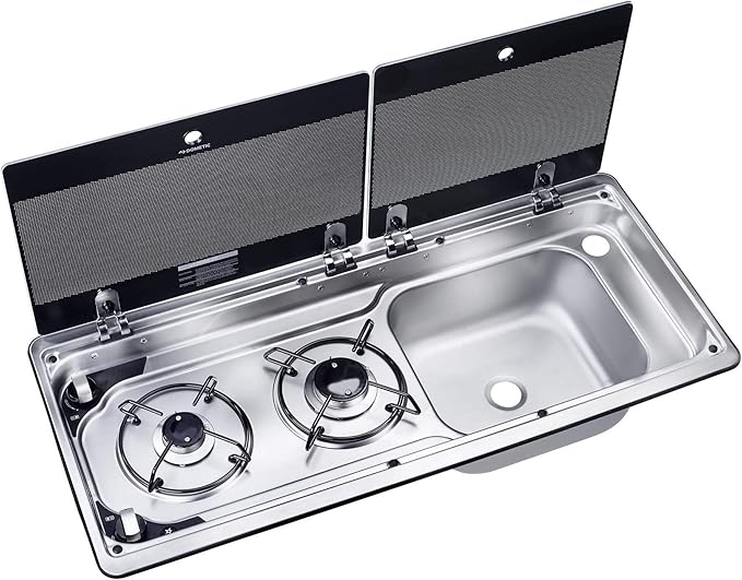 Bateau Caravane Rv Camping Car 2 Bruleurs Lpg Cuisiniere A Gaz Plaque De Cuisson Et Evier Combo Avec Plateau En Verre Trempe 775 365 150 120mm Gr 904ls Aliexpress